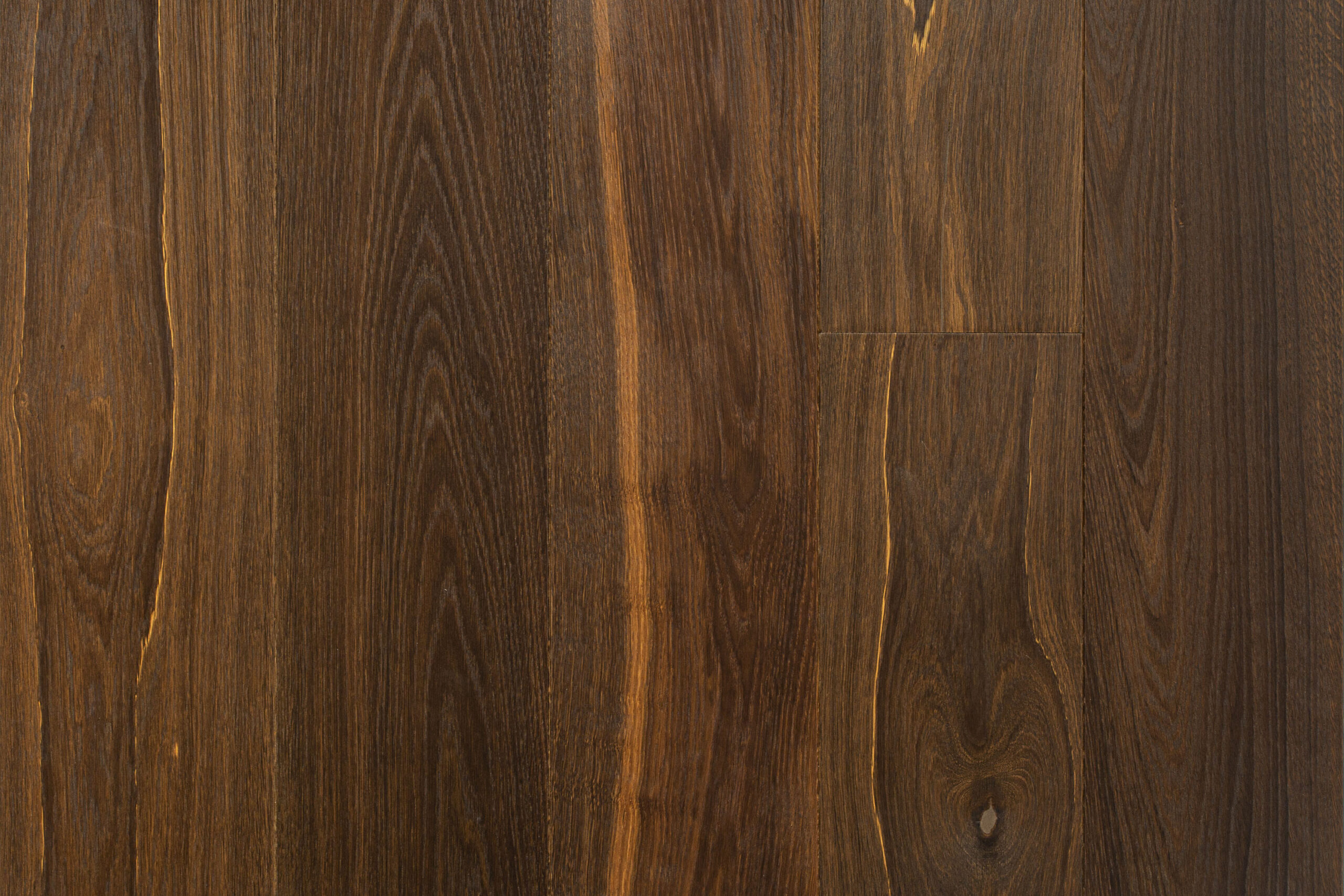 Podłoga o głębokiej ciemnobrązowej barwie.