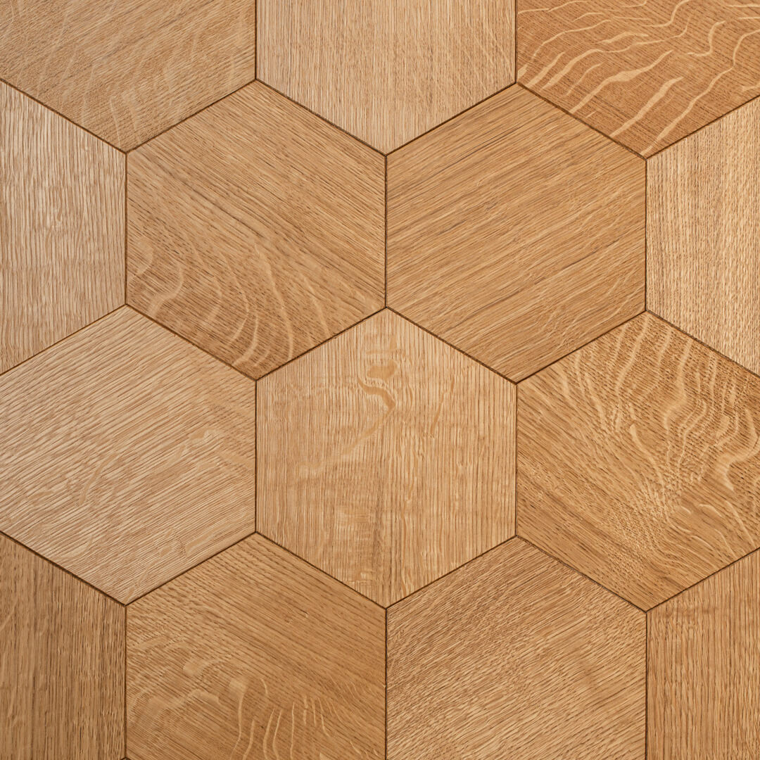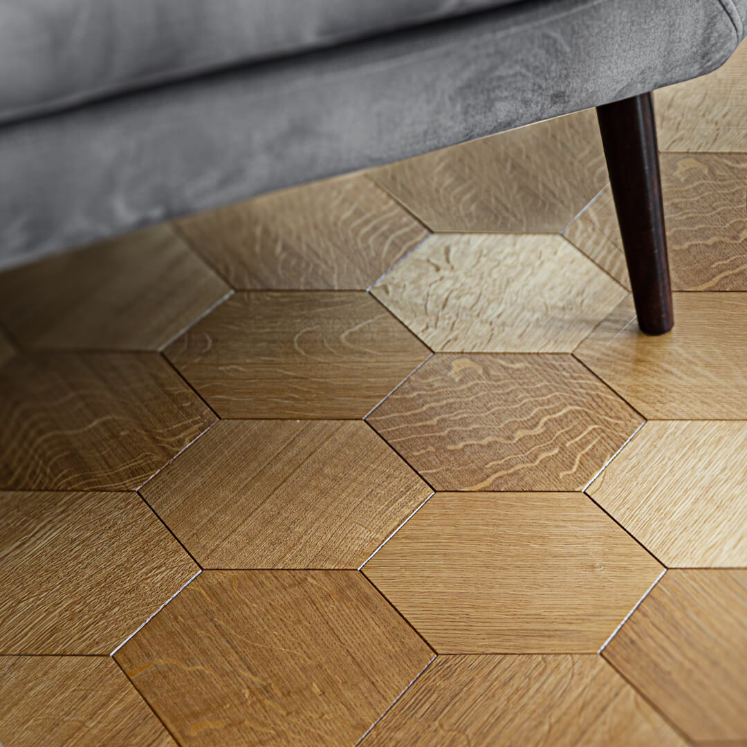 Podłoga z motywem tzw. plastra miodu – połączenie klasyki z nowoczesnością, które zapewnia wyjątkowy efekt dekoracyjny i podkreśla niepowtarzalny charakter tego wzoru. Jego wygląd kojarzy się z eleganckim wnętrzem ekskluzywnego domu czy pałacu.